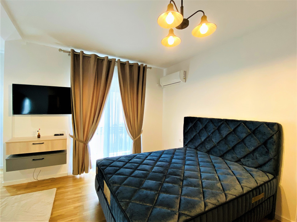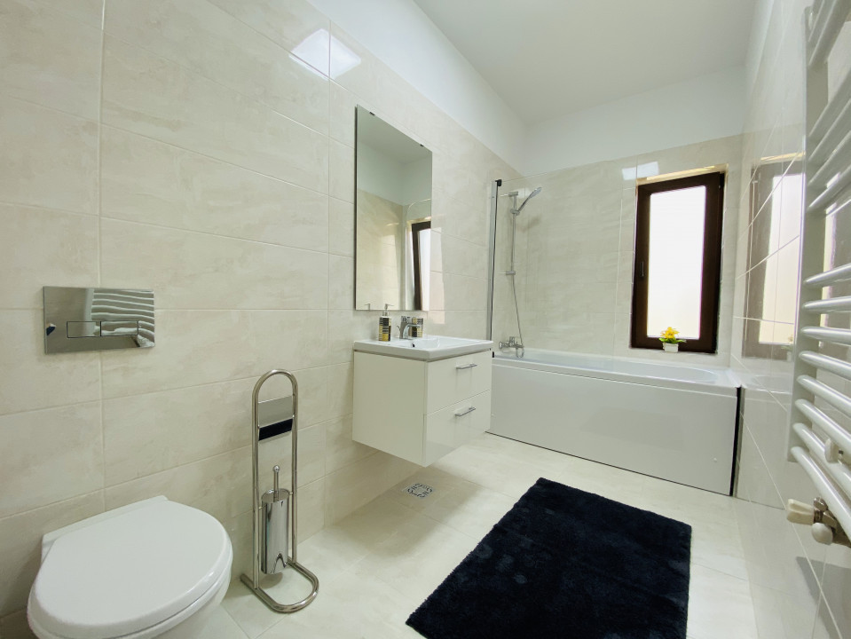Se închiriază complet mobilată (mobilă de bucătărie cu plită, cuptor şi hotă incorporate, dressing spaţios, mobilier modern) şi utilată cu electrocasnice de calitate, centrală termică Ariston, aer condiţionat, Smart TV, combină frigorifică, maşină de spălat, motiv pentru care chiriaşul se poate instala imediat după încheierea contractului.
