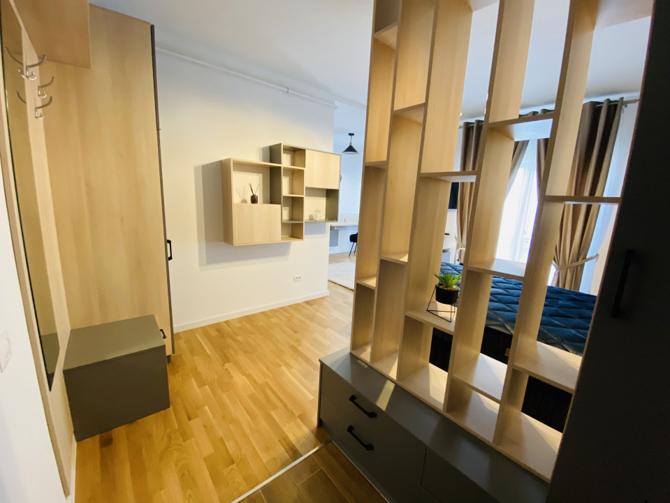 Modernă şi elegantă, aceasta face parte dintr-o construcţie nouă, anul 2019, dispune de o suprafaţă utilă totală de 47 mp, fiind compusă dintr-un dormitor, dressing, bucătărie, grup sanitar şi 2 balcoane deschise.