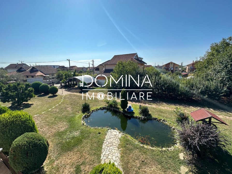 Curtea este împrejmuită integral prezentând la frontul stradal de 38 m.l. gard placat cu piatră naturală și fier forjat. Parcursul curții oferă o zonă destinată relaxării, aceasta este frumos amenajată cu spațiu verde decorat cu plante și arbuști ornamentali, piscină exterioară, iaz populat cu pește, foișor, unde vă puteți bucura împreună cu familia și prietenii.