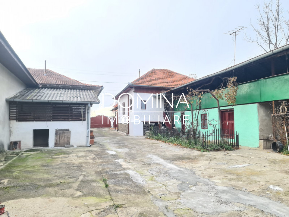 Teren intravilan: 2.335 mp, împrejmuit cu gard din piatră, având dublă deschidere la stradă asfaltată: 16 m.l. la intrare și 15 m.l. în capătul din spate.