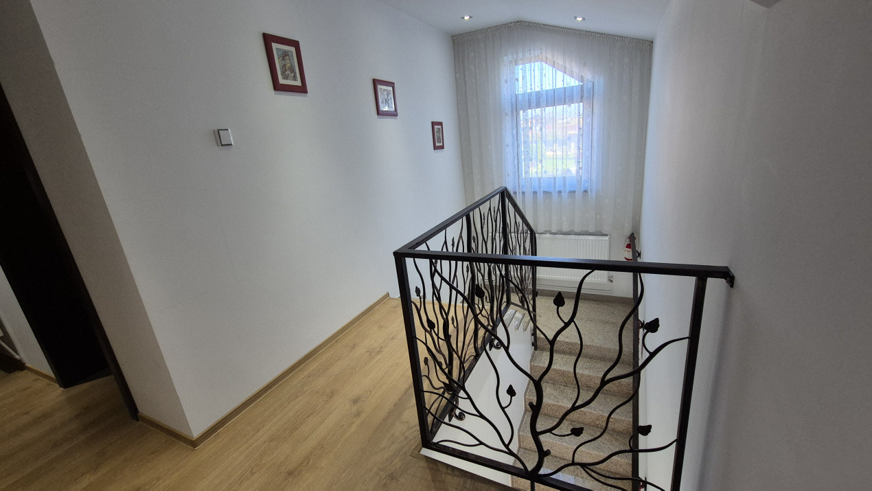 - scară interioară placată cu granit si balustradă din fier forjat
