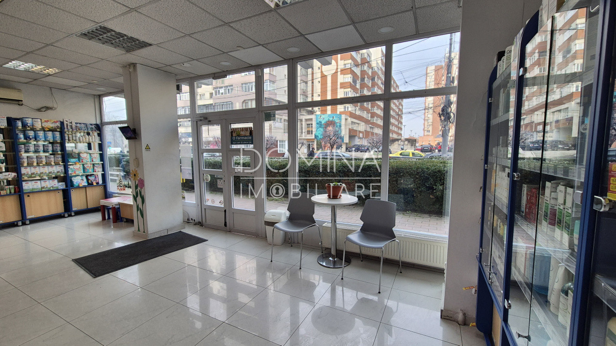 Spațiul este amplasat la parterul unui bloc cu 8 etaje, beneficiind de vizibilitate foarte bună din stradă, acces facil și un vad comercial deja format, fiind ideal pentru desfășurarea diverselor tipuri de activități.
