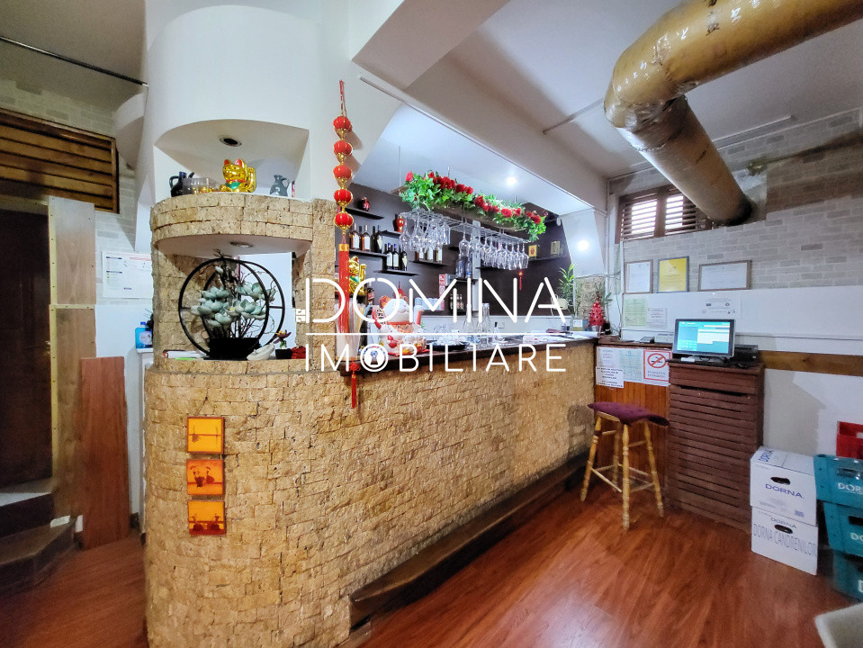 Compartimentare: o încăpere open-space, delimitată în zonă de bar, bucătărie și magazie, precum și două grupuri sanitare separate.
